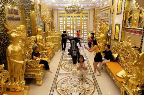 Những ngày qua, người dân cả nước bày tỏ sự choáng ngợp trước một ngồi nhà rộng gần 1.500m2 được chủ nhân dát vàng toàn bộ ở Cần Thơ. Nhiều người cảm thấy thích thú, lạ lẫm tìm tới chiêm ngưỡng và lưu lại những khoảnh khắc làm kỷ niệm.