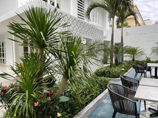 Ngay cạnh khu vực hồ bơi là một vườn cây xanh mát. Đặc biệt, cặp đôi đã dành riêng một góc vườn để trồng rau thủy canh. Hệ thống vườn rau thủy canh của gia đình gồm 4 tầng, 8 ống, với các loại rau như cải, xà lách, mướp,... tạo nên một "trang trại" thu nhỏ giữa lòng thành phố nhộn nhịp.