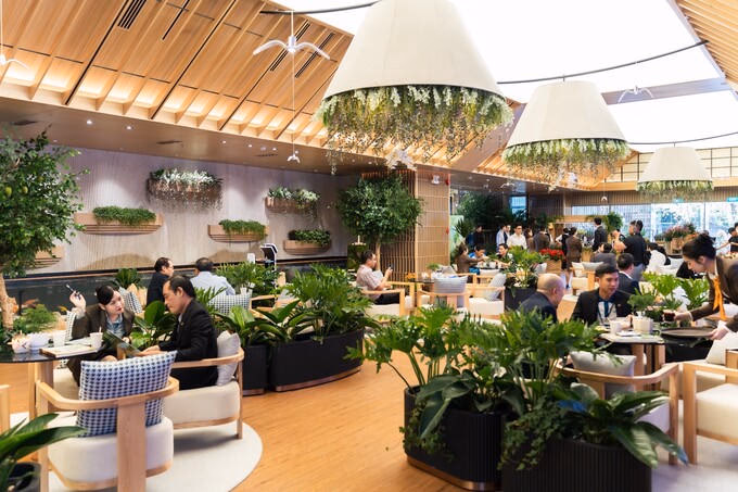 Đến với Phu Long Pavilion, khách hàng sẽ có những trải nghiệm độc đáo với “khu vườn treo” xanh mát, các mảng tường phủ cây, trần xuyên sáng tràn ngập ánh sáng tự nhiên, cùng vườn Nhật, hồ cá, thác nước và hình ảnh những chú chim trắng bay lượn. Hương thơm dịu nhẹ từ tinh dầu thiên nhiên, hay bức tường đá muối Himalaya thanh lọc không khí mang lại không gian trong lành, thoáng mát, và cả những thanh âm tự nhiên như tiếng chim hót, tiếng suối chảy, hoặc giai điệu nhẹ nhàng của “Simple Beauty”, rộn ràng của “Phiên chợ Ba Tư”,... tạo nên trải nghiệm ngũ quan độc đáo và thư giãn. Các chất liệu tự nhiên trong Phú Long Pavilion được lựa chọn cẩn trọng, từ nội thất gỗ ấm áp đến ghế ngồi êm ái, để đảm bảo mọi cảm nhận của khách hàng đều được chăm chút tối đa.