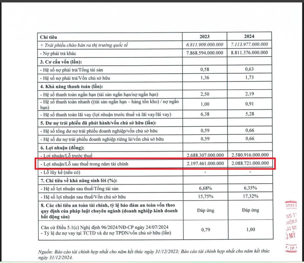 Theo văn bản công bố thông tin về tình hình tài chính gửi Sở Giao dịch Chứng khoán Hà Nội (HNX), năm 2024, Công ty TNHH Phát triển Phú Mỹ Hưng ghi nhận gần 2.089 tỷ đồng lợi nhuận sau thuế, giảm 5% so với năm 2023. Đây là năm thứ 2 liên tiếp lợi nhuận của doanh nghiệp này suy giảm.