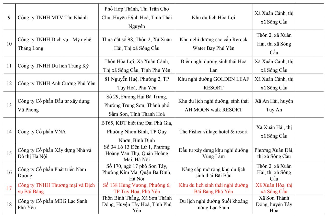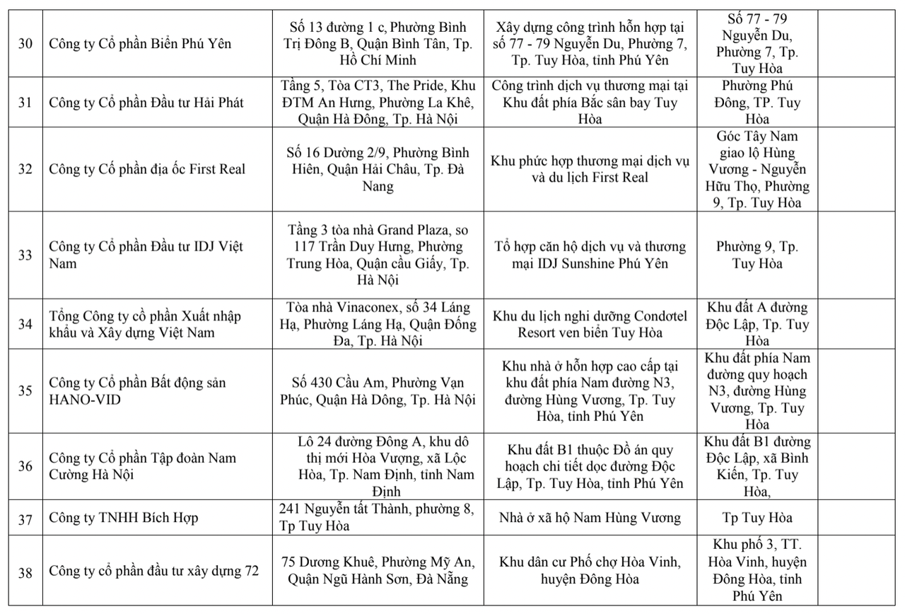 Danh sách 40 dự án bị Sở Xây dựng Phú Yên “bêu tên” vì vi phạm Nghị định số 117/2015 của Chính phủ: