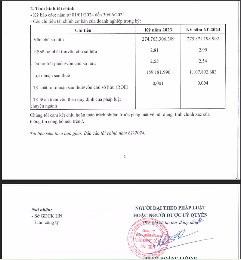 Hiện tại, Phúc Khang Đông Sài Gòn mới chỉ công bố BCTC bán niên năm 2024. Theo kết quả được công bố, lợi nhuận sau thuế nửa đầu năm 2024 chỉ vỏn vẹn hơn 1,1 tỷ đồng; tuy vậy vẫn tăng so với khoản lãi ròng hơn 159 triệu đồng kỳ năm 2023.