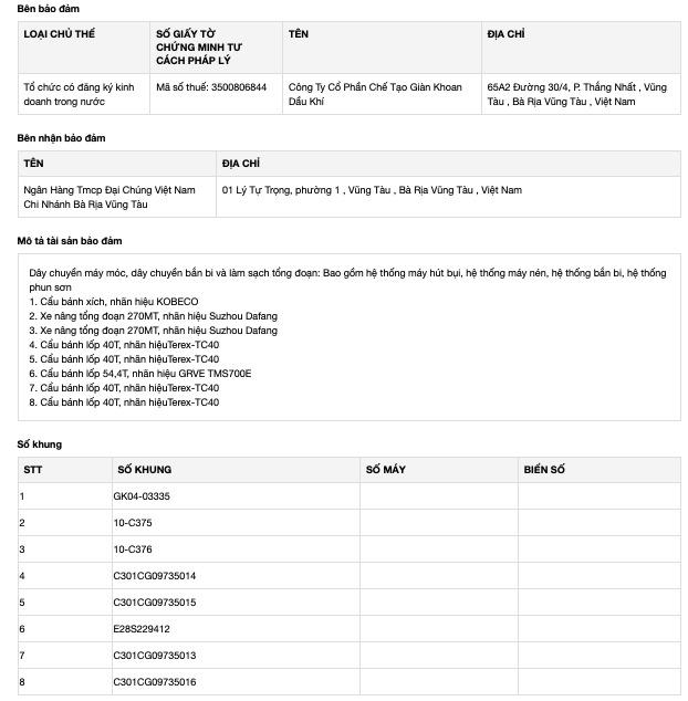 Thông tin từ đăng ký giao dịch đảm bảo cho hợp đồng đảm bảo ngày 27/9/2013 cho thấy số tài sản được mang ra làm đảm bảo cho các khoản vay xấp xỉ 900 tỷ đồng này khá "nghèo nàn" với danh sách đính kèm.