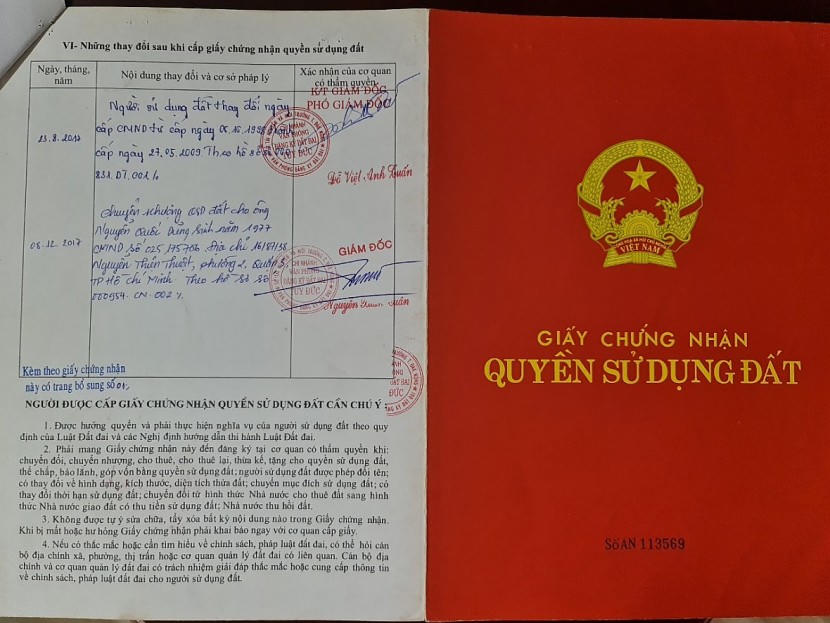 Theo dữ liệu trong các sổ đỏ thì thời điểm UBND huyện Tuy Đức cấp là vào ngày 15/9/2008 và ngày 19/9/2008. Đến tháng 12/2017, 08 thửa đất này đã được chuyển nhượng cho ông Nguyễn Quốc Dũng, sinh năm 1977, thường trú tại TP. Hồ Chí Minh. Việc chuyển nhượng được Văn phòng đăng ký đất đai chi nhánh huyện Tuy Đức (thuộc Sở Tài nguyên và Môi trường tỉnh Đắk Nông) xác nhận hợp pháp ở trang bổ sung trong các sổ đỏ.