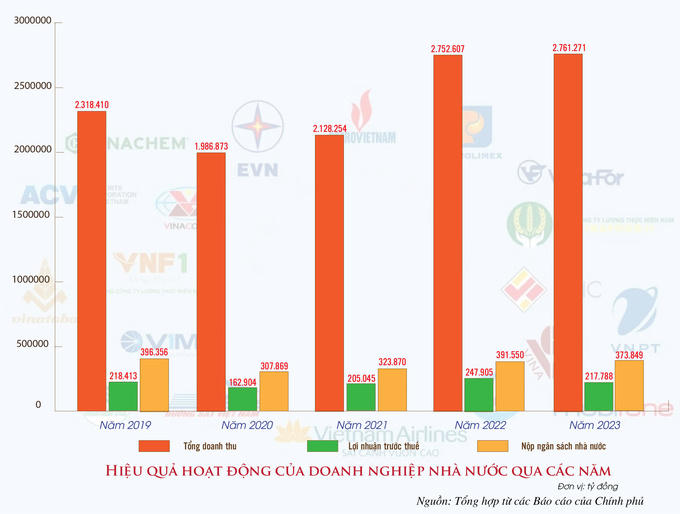 Đơn cử một số DNNN lớn như Tập đoàn Điện lực Việt Nam (EVN) tiếp tục lỗ 26,7 nghìn tỷ đồng năm 2023, tăng 29% so với khoản lỗ một năm trước đó. Công ty mẹ - Tổng công ty Hàng không Việt Nam (Vietnam Airline) lỗ hơn 8,8 nghìn tỷ đồng trong hai năm (2022-2023).