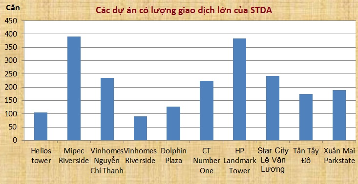 Bám sát ngay sau đó là STDA, theo số liệu từ đơn vị phân phối này tính đến 25/12/2014 số lượng giao dịch thành công tại STDA trên thị trường Hà Nội đạt 2.827 căn. Với con số này so với quy mô toàn thị trường STDA chiếm khoảng 22% thị phần. Các tháng đạt doanh số cao nhất vào tháng 8 đạt khoảng 375 giao dịch, tháng 9 khoảng 352 giao dịch và tháng 11 khoảng 380 giao dịch…