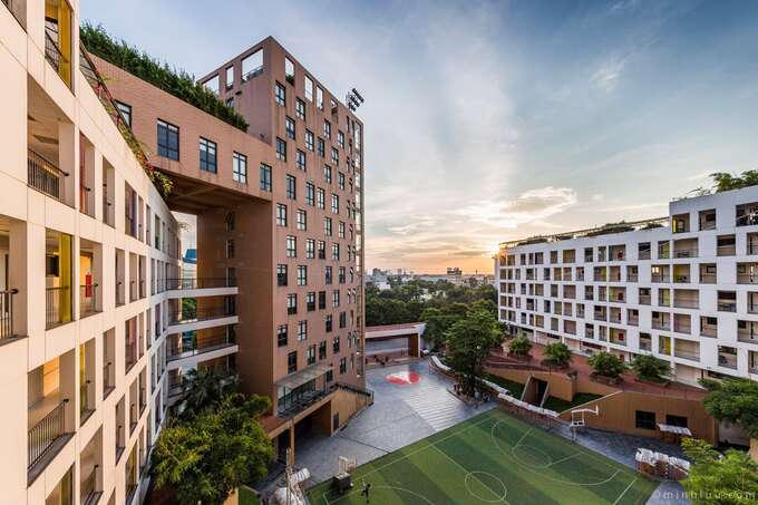 Trường Liên cấp Việt - Úc có diện tích 15.000m2 với hơn 210 phòng học, hệ thống phòng học chức năng, nhà ăn, nhà thi đấu thể dục thể thao và ký túc xá.