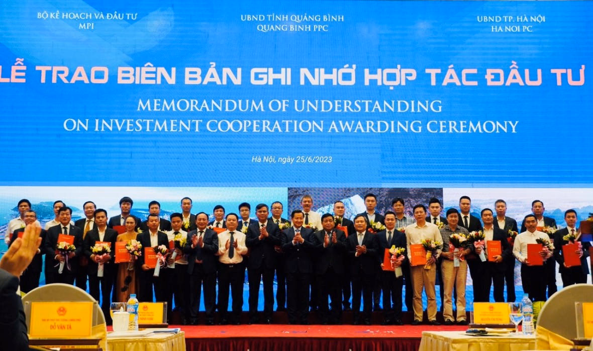 Tại Hội nghị, UBND tỉnh Quảng Bình cũng đã trao biên bản ghi nhớ hợp tác đầu tư cho 29 nhà đầu tư/31 dự án và khu vực quan đầu đầu tư với tổng vốn đăng kí 62.165 tỉ đồng (khoảng 2,7 tỉ USD). Đồng thời tại Hội nghị, Sở Du lịch thành phố Hà Nội và Sở Du lịch tỉnh Quảng Bình đã trao thoả thuận hợp tác phát triển du lịch giữa 2 địa phương giai đoạn 2023 - 2030; Trung tâm TTXT Du lịch Quảng Bình và Câu lạc bộ lữ hành UNESCO Hà Nội sẽ trao thoả thuận hợp tác giữa 2 đơn vị...