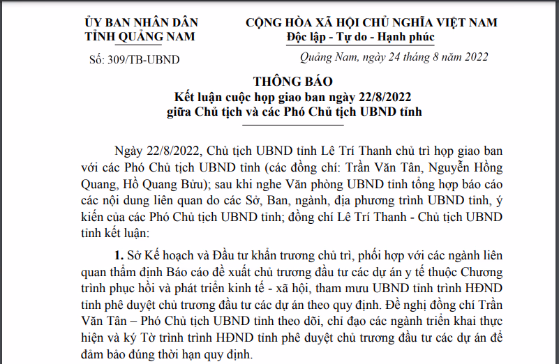 Văn phòng UBND tỉnh Quảng Nam vừa thông báo Kết luận cuộc họp giao ban giữa Chủ tịch và các phó chủ tịch UBND tỉnh. Trong văn bản này, Chủ tịch tỉnh Quảng Nam đã đồng ý gia hạn tiến độ cho hai dự án tại Khu đô thị mới Điện Nam – Điện Ngọc.