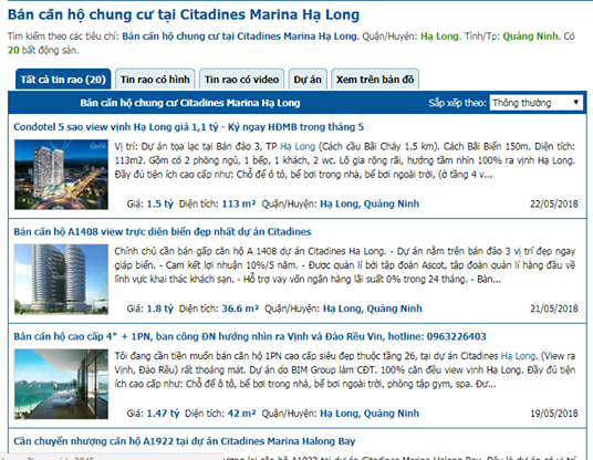 Thông tin rao bán căn hộ tại dự án Citadines Marina Hạ Long xuất hiện tràn lan trên các diễn đàn có tiếng về đất động sản mặc dù hiện tại công trình này vẫn chưa đủ điều kiện bán hàng...Khách hàng rất dễ gặp rủi ro từ những sự việc này.