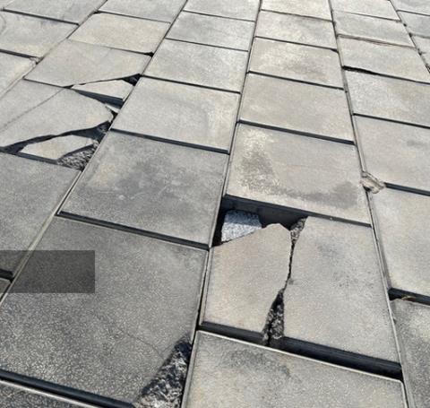 | Đá lát quảng trường trung tâm huyện Lý Sơn vỡ vụn nhiều chỗ (Ảnh Dân việt). |