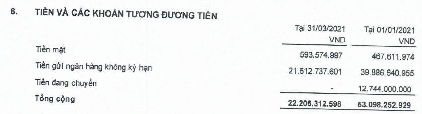 Tính đến 31/3/2021, khoản tiền và tương đương tiền tại DRH giảm mạnh 58%, chỉ còn hơn 22 tỷ đồng. Nhưng so với các khoản vay 1.668 tỷ đồng, lượng tiền mặt trên rất bấp bênh nếu xét về khả năng thanh toán nhanh.