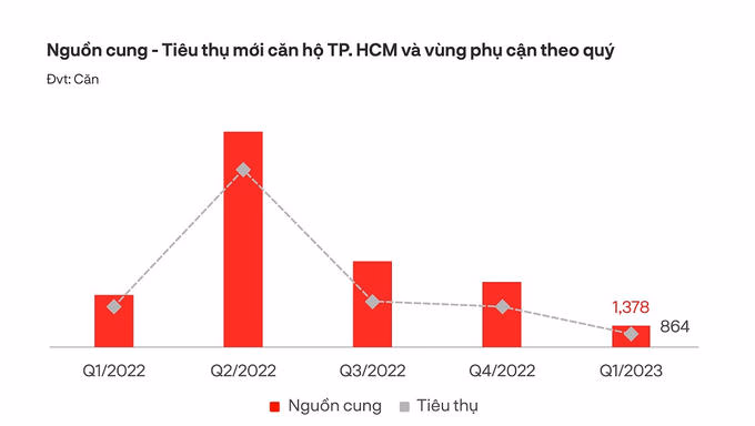 Ở TP.HCM và vùng phụ cận, thị trường bất động sản tiếp tục khan hiếm nguồn cung mới và lượng tiêu thụ ghi nhận ở mức thấp so với quý 1/2022.