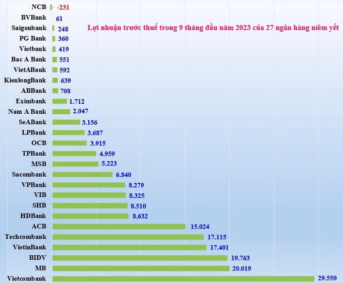 Vietcombank tiếp tục giữ vị trí quán quân về lợi nhuận ngành ngân hàng trong một thời gian dài đã đạt 29.550 tỷ đồng lợi nhuận trong 9 tháng. Lợi nhuận của Vietcombank đã bỏ xa phần còn lại trong ngành.