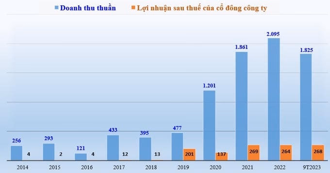 Lũy kế 9 tháng đầu năm 2023, công ty đạt 1.825 tỷ đồng doanh thu thuần và 269 tỷ đồng lợi nhuận sau thuế của cổ đông công ty, tăng lần lượt 23,5% YoY và 26,1 YoY.
