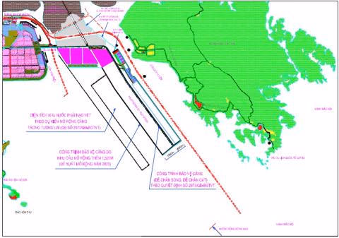 Theo Quyết định số 2973/QĐ-BGTVT [4] ngày 05/08/2014 của Bộ Giao thông Vận tải (GTVT), tuyến bến cảng Lạch Huyện dài khoảng 11km, xây dựng đê chắn sóng để tạo ra khu đất chiều rộng 800m, trong đó có 200m để xây đường giao thông. Diện tích khu nước dự kiến phát triển cảng trong tương lai khoảng 774ha nằm trên bãi bồi trước đảo Hà Nam, cao độ tự nhiên -2,0 - -5,0m HHĐ cần nạo vét xuống -14,0 - -16,0m rất tốn kém (dự tính 100 triệu m3, chưa kể nạo vét luồng) cho thấy tư duy đào đất để tạo thành khu nước của cảng biển của tư vấn là việc làm trái tự nhiên.