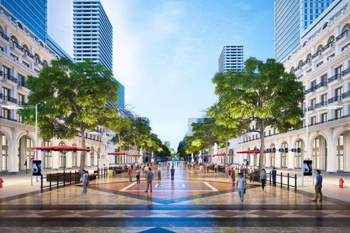 Trục phố đi bộ và Quảng trường biển Marine Times Square mang hơi thở của tuyến phố La Rambla nổi tiếng của thành phố biển Barcelona