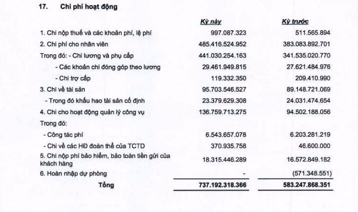 Hơn nữa, trong kỳ, chi phí hoạt động tại OCB tăng tới 26% lên hơn 737 tỷ đồng. Chủ yếu là chi phí cho nhân viên hơn 485 tỷ đồng và chi cho hoạt động quản lý công vụ gần 137 tỷ đồng.