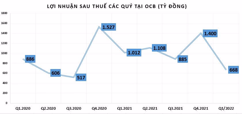 Trong quý đầu năm 2022, nguồn thu chính của OCB tăng trưởng 22% so với cùng kỳ năm trước, thu về hơn 1.670 tỷ đồng thu nhập lãi thuần, chủ yếu do tăng thu nhập lãi tiền gửi (gấp 3 lần cùng kỳ) và thu khác từ hoạt động tín dụng (tăng 27%).