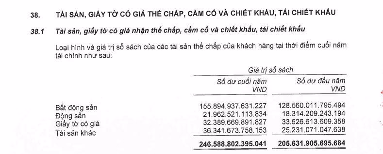 Báo cáo tài chính hợp nhất quý 1/2022 tại OCB không đề cập tới mục 'tài sản thế chấp'. Song theo báo cáo tài chính hợp nhất kiểm toán năm 2021, tính đến cuối năm 2021, OCB đang nắm trong tay gần 155.895 tỷ đồng bất động sản thế chấp, tăng 21% so với thời điểm 1/1/2021, chiếm 63% tổng tài sản thế chấp. Tốc độ tăng này còn cao hơn cả tốc độ tăng trưởng tín dụng tại OCB trong năm 2021.