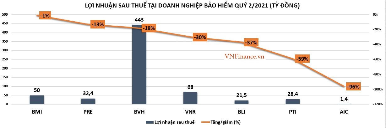 Theo thống kê từ BCTC hợp nhất quý 2/2021 tại 11 doanh nghiệp bảo hiểm thì có tới 7/11 doanh nghiệp có lợi nhuận quý 2 sụt giảm đáng kể.