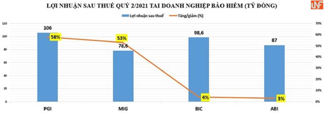 Chẳng hạn tại Tổng CTCP Bảo hiểm Petrolimex (PGI) báo lãi sau thuế quý 2 đạt 106 tỷ đồng, tăng 58% so với quý 2/2020.