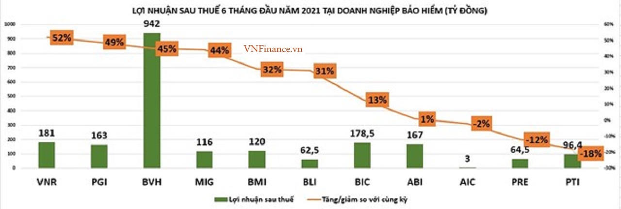 Chẳng hạn, lợi nhuận sau thuế tại VNR đạt hơn 181 tỷ đồng lãi ròng, tăng 52% so với cùng kỳ; tại PGI tăng 49% lên 163 tỷ dồng, tại BVH tăng 45% lên gần 942 tỷ đồng; tại MIG đạt 116 tỷ đồng, tương đương tăng 44%;...
