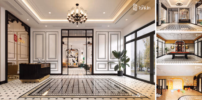 The Tonkin bao gồm hai tòa tháp căn hộ đẳng cấp, tiên phong đưa phong cách Indochine vào thiết kế cảnh quan tiện ích và nội thất công cộng.