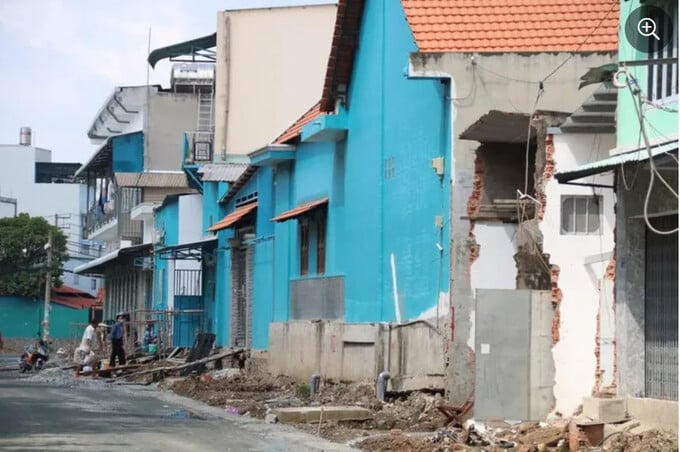 Bên cạnh đó, dọc theo tuyến dự án, nhiều ngôi nhà đã lùi sâu vào bên trong để nhường mặt bằng, một số hộ dân có nhà bị giải tỏa hoàn toàn đã chuyển đến nơi khác, trong khi các khu vực mặt bằng bàn giao muộn hiện đang được thi công sửa chữa để sớm ổn định đời sống của người dân.