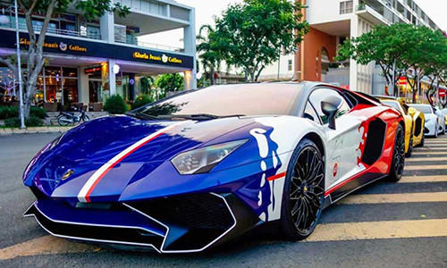 Lamborghini Aventador phiên bản SuperVeloce của đại gia Minh "nhựa" có nguyên bản là màu xanh. Trước đó, vào đầu tháng 4, sau khi xuất hiện tại Việt Nam không lâu, vị đại gia này đã cho thay đổi màu sắc ngoại thất cho “siêu bò” của mình với tông màu chủ đạo là trắng và đỏ.