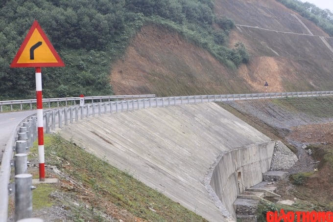 Tuyến đường này một bên là núi cao sừng sững, một bên là vực thoải thăm thẳm vì vậy rất dễ bị sạt lở khi gặp điều kiện thời tiết xấu. Để ngăn sạt lở đất, đơn vị thi công gia cố mái taluy bên vách núi, đồng thời bố trí hệ thống thoát nước trên sườn dốc và mặt đường.