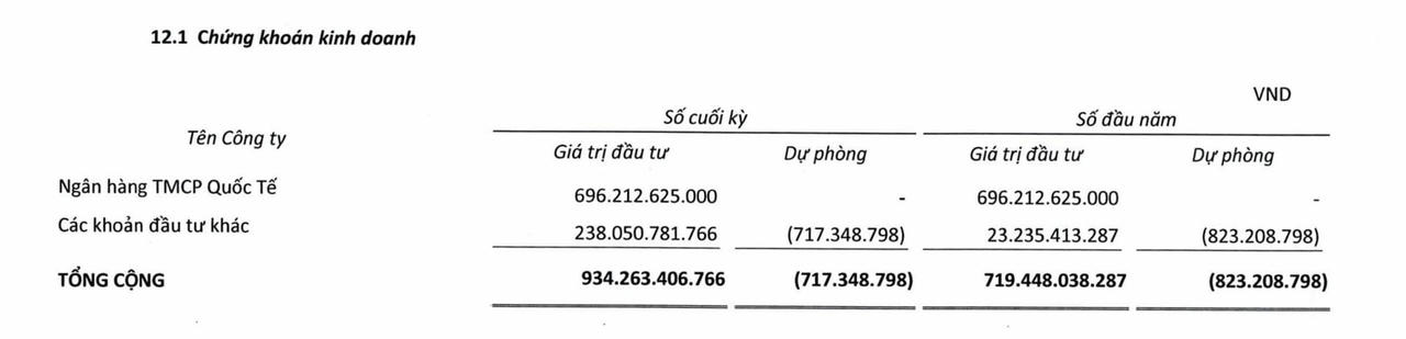Liên quan đến các khoản đầu tư tài chính ngắn hạn, cuối kỳ, REE Corp ghi nhận giá trị chứng khoán kinh doanh ở mức 934 tỷ đồng, tăng gần 30% so với đầu năm. Phần lớn số tiền này được rót vào Ngân hàng TMCP Quốc tế (HoSE: VIB), với 696 tỷ đồng.