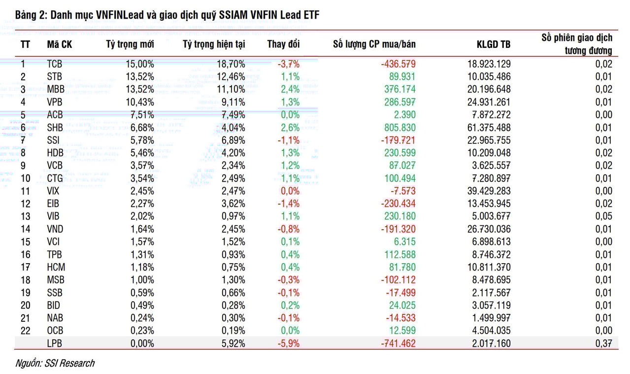 Quỹ SSIAM VNFIN Lead ETF, quỹ mô phỏng chỉ số VNFIN Lead, hiện đang quản lý khối tài sản gần 400 tỷ đồng, được dự báo sẽ bán ra khoảng 741.000 cổ phiếu LPB.