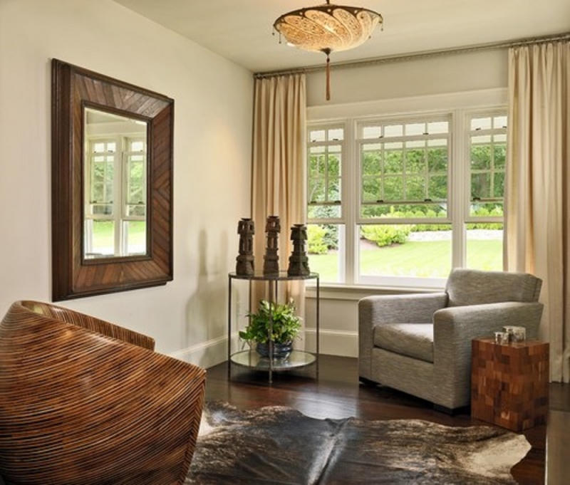 Một chiếc gương soi lớn sẽ giúp nhân đôi không gian, tạo hiệu quả cao về mặt thị giác. Hãy “xóa” đi bức tường trong thiết kế nội thất phòng khách bằng một chiếc gương lớn, mọi thứ trông sẽ rộng lớn hơn nhiều. Nếu phòng khách của gia đình nhỏ hẹp, gương nên được bố trí ở phía bên phải cửa ra vào và chiếm gần hết diện tích bức tường để “nới rộng” không gian.