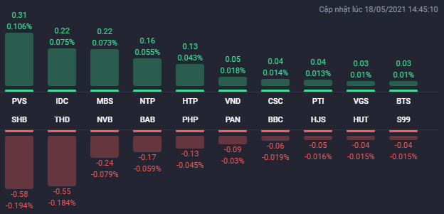 Chiều ngược lại, không có quá nhiều cổ phiếu bất động sản thanh khoản cao tăng giá ở phiên 18/5. Trong đó, PVL được kéo lên mức giá trần 3.800 đồng/cp, IDC tăng 2,7% lên 34.600 đồng/cp, FLC tăng 1,2% lên 12.450 đồng/cp.