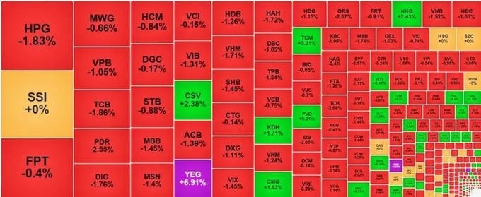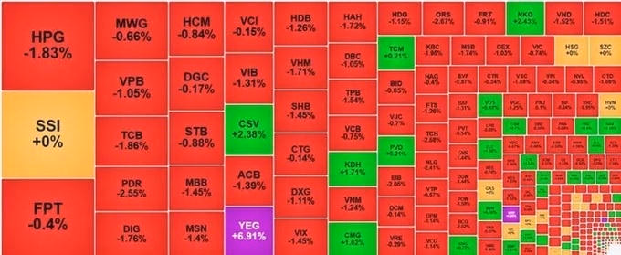 Sắc đỏ lấn át thị trường, VN-Index giảm hơn 11 điểm