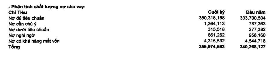 Ngoài ra, tiền gửi khách hàng tại Sacombank cũng chỉ tăng nhẹ 1% so với đầu năm, ghi nhận gần 431.137 tỷ đồng. Phát hành giấy tờ có giá tăng 15% ghi nhận 12.867 tỷ đồng.