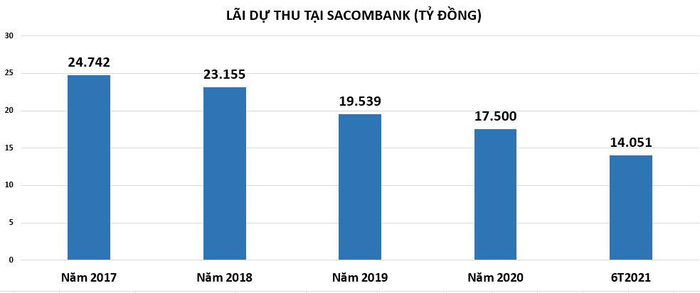 Lưu ý, tính tới 30/6/2021, lãi dự thu tại Sacombank có tín hiệu tích cực khi con số này giảm so với đầu năm. Tuy nhiên, lãi dự thu vẫn ghi nhận ở mức khá cao, hơn 14.051 tỷ đồng trong khi lợi nhuận sau thuế đạt 1.914 tỷ đồng. Do đó, tỷ lệ lãi dự thu/lợi nhuận sau thuế cao gấp 7,3 lần.