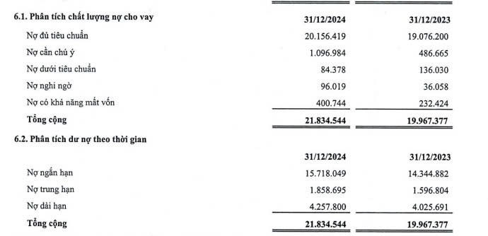 Tại thời điểm 31/12/2024, tổng tài sản của Saigonbank ghi nhận ở mức 33.260 tỷ đồng, tăng 6% so với hồi đầu kỳ. Trong đó, cho vay khách hàng tăng 9% so với đầu năm lên 21.834 tỷ đồng. Tiền gửi khách hàng tăng 4% lên 24.413 tỷ đồng.