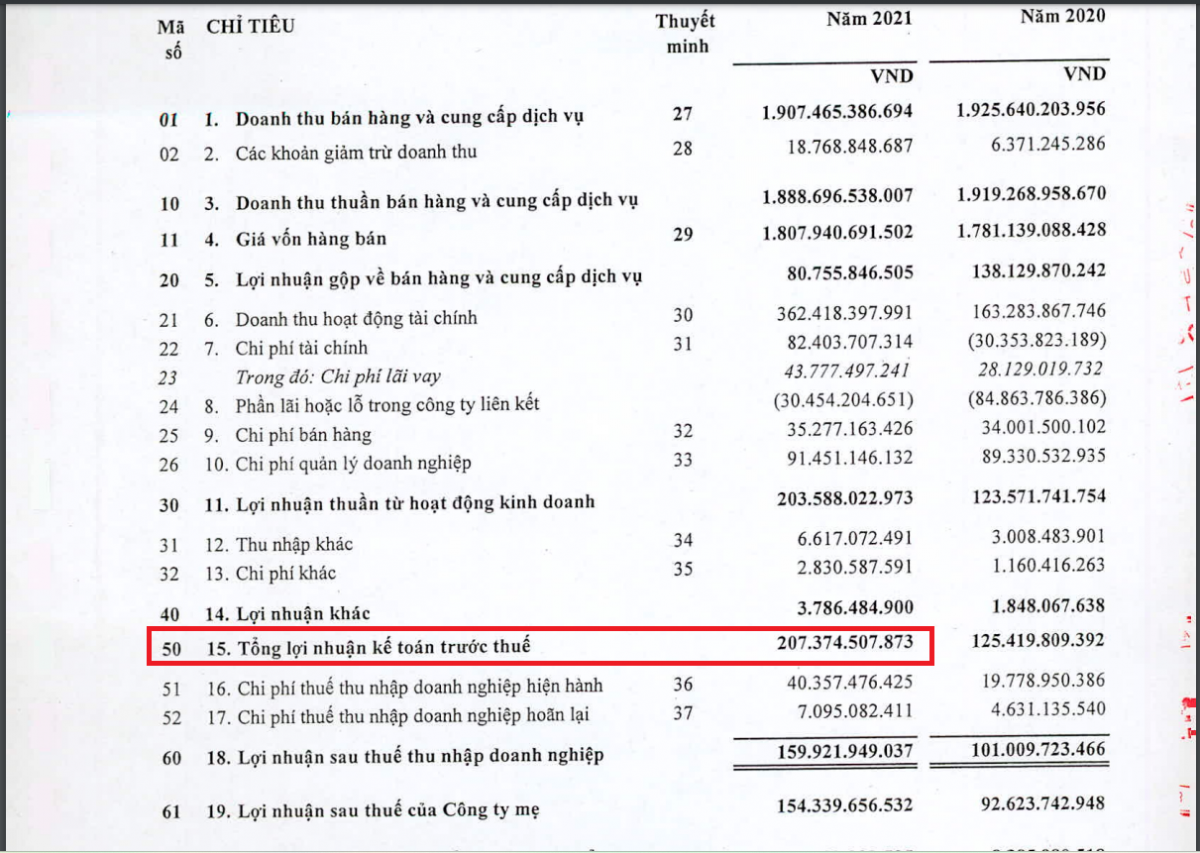 Cụ thể, vào năm 2021, tổng doanh thu của SAM Holdings là 2.251 tỷ đồng, bao gồm doanh thu thuần 1.889 tỷ đồng, giảm 2% và doanh thu tài chính 362 tỷ đồng, tăng 122%. Công ty báo lãi trước thuế 207 tỷ đồng, tăng 66% và lãi sau thuế 160 tỷ đồng, tăng 58%.