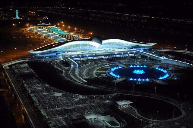 Bên cạnh những tòa nhà cẩm thạch tráng lệ, thủ đô của Turkmenistan còn được biết đến với sân bay hình chim Ưng vô cùng độc đáo. Được biết, Turkmenistan vốn không phải là một đất nước hút khách du lịch. Tuy nhiên, quốc gia Trung Á này vẫn đề cao tiềm năng du lịch của mình và không ngần ngại chi 2,3 tỷ USD (khoảng 51.000 tỷ đồng tại thời điểm xây dựng) để xây dựng sân bay quốc tế mới với hình dáng một chú chim Ưng đang sải cánh ở ngay thủ đô Ashgabat.