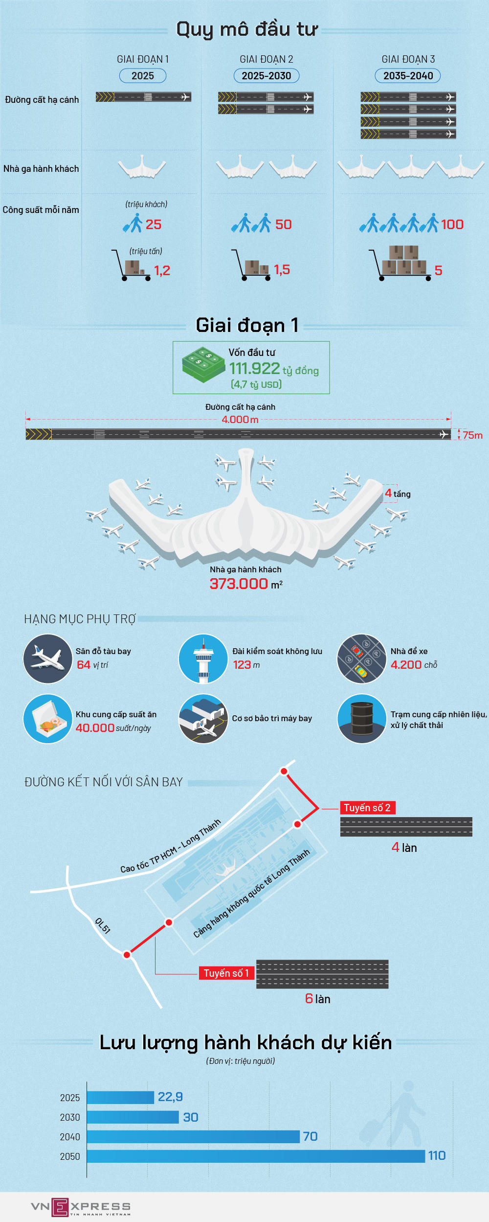 Sân bay Long Thành quy mô như thế nào? Năm 2025, sân bay quốc tế Long Thành có công suất 25 triệu hành khách, 15 năm sau nâng lên 100 triệu. Chủ Nhật 04/08/2019 06:46 (GMT+7) Theo Tạ Lư - Đoàn Loan/Vnexpress