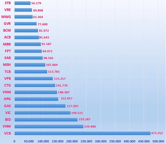 Đến hết tháng 6/2023, trên HOSE có 40 doanh nghiệp có vốn hóa hơn 1 tỷ USD, trong đó Ngân hàng TMCP Ngoại thương Việt Nam (Vietcombank, mã VCB) và CTCP Vinhomes (mã VHM) là hai doanh nghiệp có vốn hóa trên 10 tỷ USD.