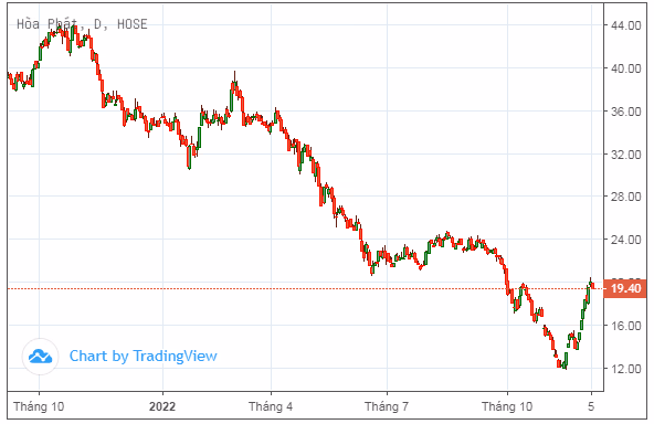Trên thị trường chứng khoán, giá cổ phiếu HPG của Tập đoàn Hòa Phát sau khi lùi về đáy hơn 2 năm, đang có sự hồi phục khá mạnh trong hơn nửa tháng gần đây. Ghi nhận phiên sáng 6/12, thị giá của cổ phiếu HPG ở mức 19.400 đồng/cổ phiếu, tăng 60% so với đáy hôm 10/11 nhưng vẫn cách đỉnh hồi tháng 10 năm ngoái gần 56%.