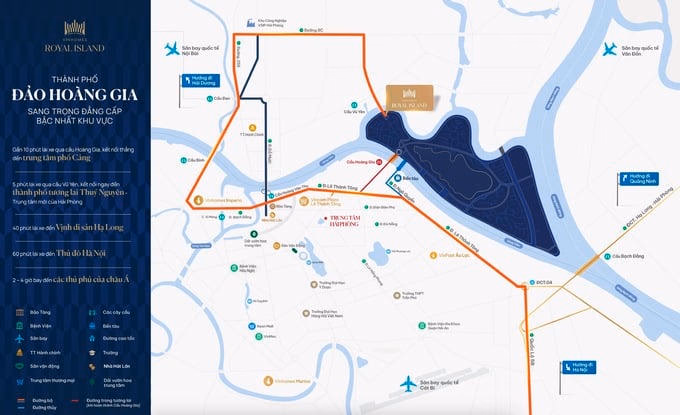 Thông qua cầu Vũ Yên, cư dân cũng chỉ mất 5 phút di chuyển là có thể tới thành phố Thủy Nguyên tương lai - trung tâm hành chính mới đang phát triển sôi động của Hải Phòng. Trong tương lai gần, khi các dự án hạ tầng giao thông khác của Hải Phòng như cầu Nguyễn Trãi, hầm vượt sông Vũ Yên hoàn thiện, cư dân Vinhomes Royal Island chỉ cần “một bước vào phố, một bước tới đảo”.