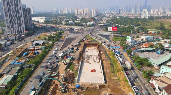 Nằm ở cửa ngõ phía Đông TP. HCM, nút giao thông An Phú có kinh phí xây dựng gần 3.500 tỷ đồng. Nơi này sẽ được xây 2 hầm chui, 2 cầu vượt tạo nên nút giao thông 3 tầng. Sau một năm - từ khi khởi công (tháng 12/2022) - dự án đạt hơn 30% tổng khối lượng.