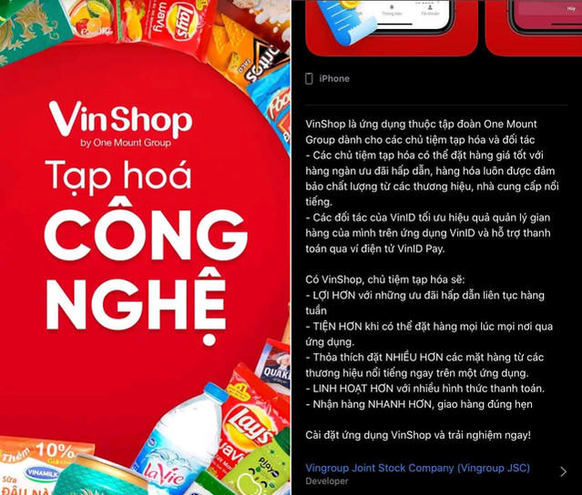 Tuy nhiên mới đây, trên các kho ứng dụng Google Play Store và AppStore của Apple đã xuất hiện ứng dụng VinShop được phát triển bởi "Vingroup joint stock company" – tương tự như các ứng dụng khác trong hệ sinh thái của tập đoàn Vingroup như VinID, VinFast POS, MyVinpearl…
