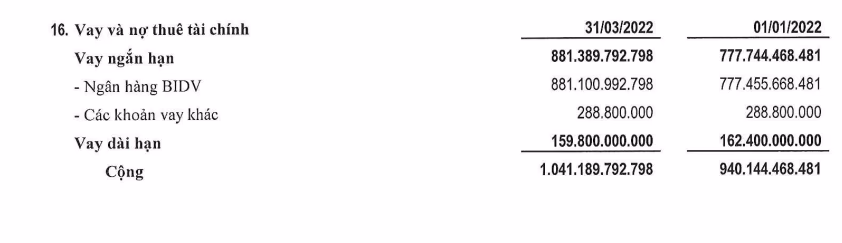 Đáng chú ý, nợ vay tại Phục Hưng Holdings tính đến 31/3/2022 ghi nhận hơn 1.041 tỷ đồng, chiếm tới 59% nợ phải trả.
