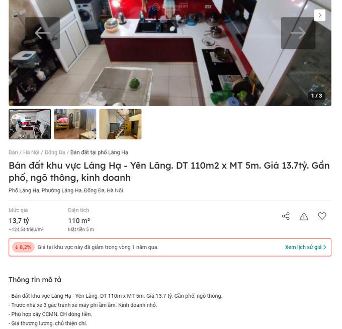 Trong khi đó, tại khu vực Láng Hạ - Yên Lãng thuận lợi cho việc buôn bán, kinh doanh thì được rao bán cao hơn một chút nhưng cũng chỉ quanh mức 100 triệu đồng/m2.