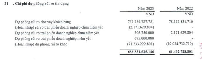 Đặc biệt, năm 2023, VietABank chi gần 760 tỷ đồng chi phí dự phòng rủi ro tín dụng khách hàng, tăng gần 10 lần so với năm 2022 (năm 2022 chi phí này chỉ hơn 78 tỷ đồng).